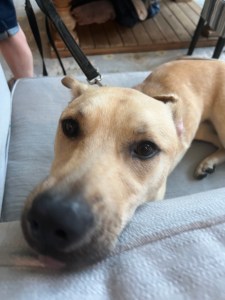 Aaaand, he’s back. In great spirits. Haven’t even needed the cone of shame for him. He tried licking a few times but quickly stopped. He was good on the car ride there — he was free but confined to the back of the SUV. A little fidgety and whiny, I heard, but didn’t try to bust through.