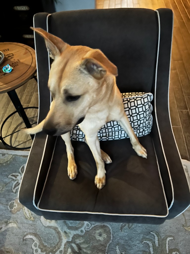 - Few chewing issues. Shoes, furniture, and other items strewn about have generally been left alone, but as he has gotten more comfortable, he occasionally takes off with a shoe or pillow. He is curious about countertops and what’s on them but is quick to get down. Highly suggest some dog puzzles like the Kong wobbler to keep him busy.