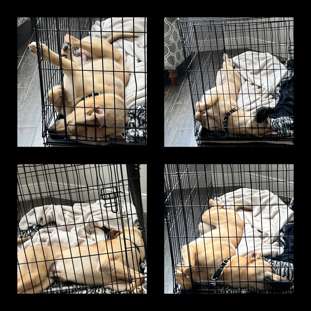 He was a little restless sleeping last night, but went right in his crate and didn’t fuss.